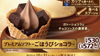 ミニストップから、冬のごほうびにぴったりな新作プレミアムソフトが登場しましたよ~。その名も「ごほうびショコラ」!2025年11月、ミニストップが送り出した新作プレミアムソフトは、その名も「ごほうびショコラ(税込572円)」。フルーティなカカ...