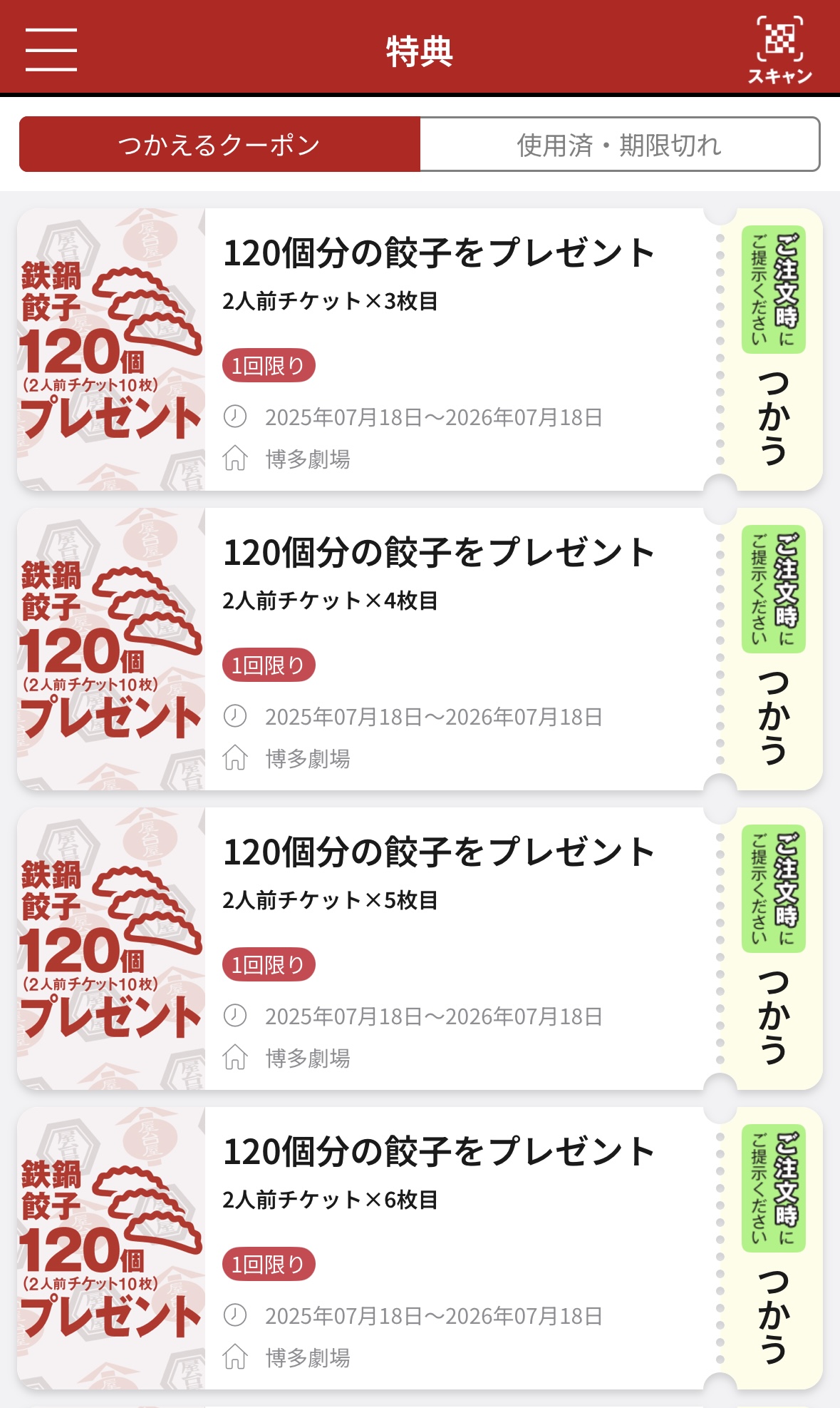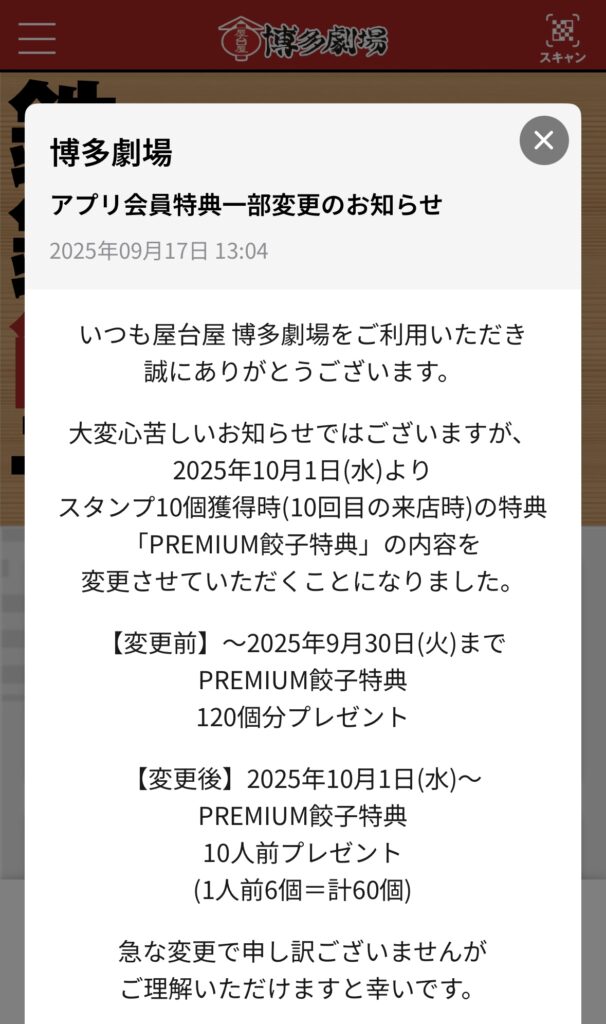 *2025年10月1日より来店10回でもらえる餃子無料特典が変更(120個→60個)となります。