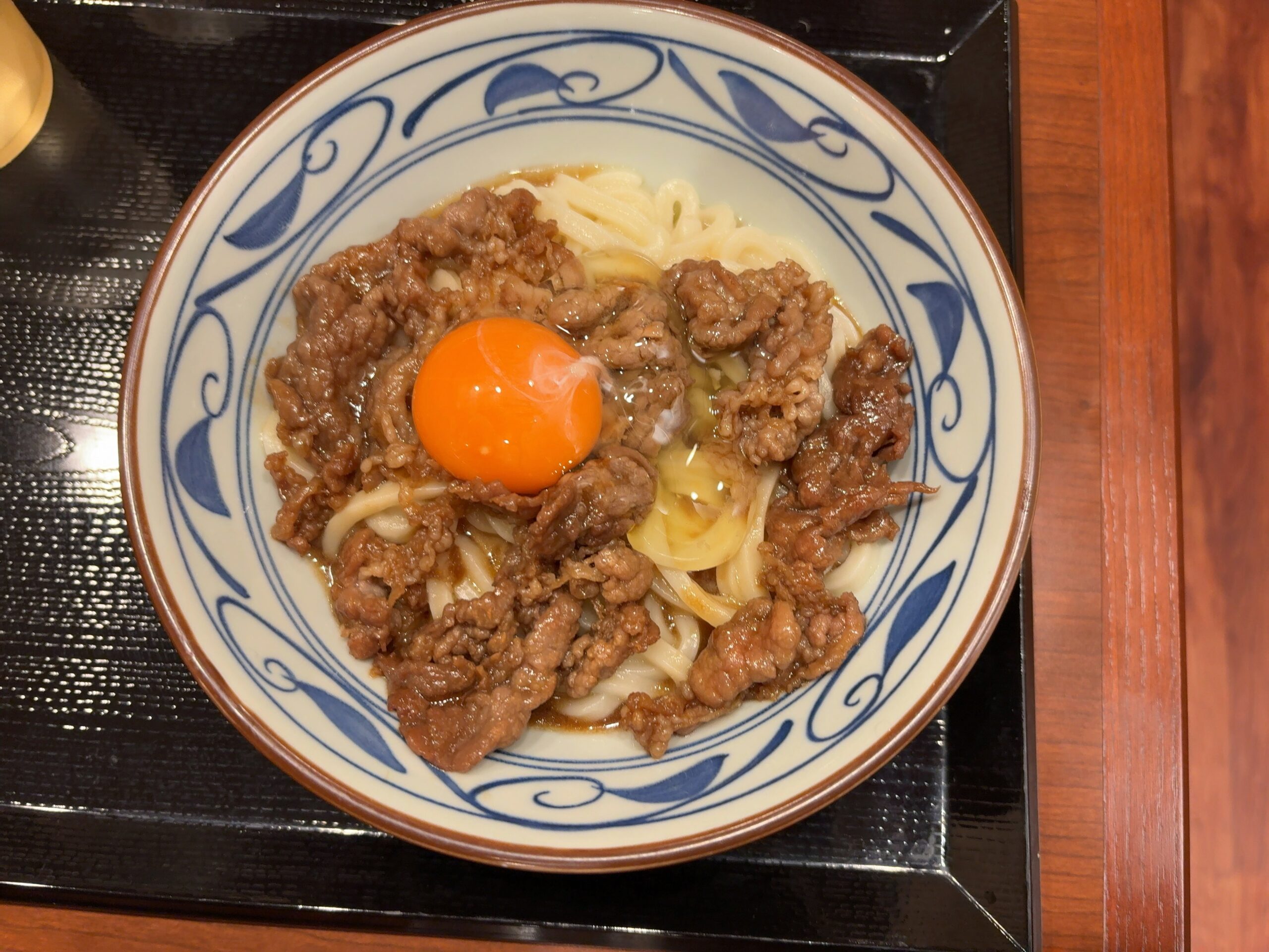今回いただいたのは、丸亀製麺の期間限定メニュー「焼きたて牛すき釜玉うどん(大)」税込1,070円!