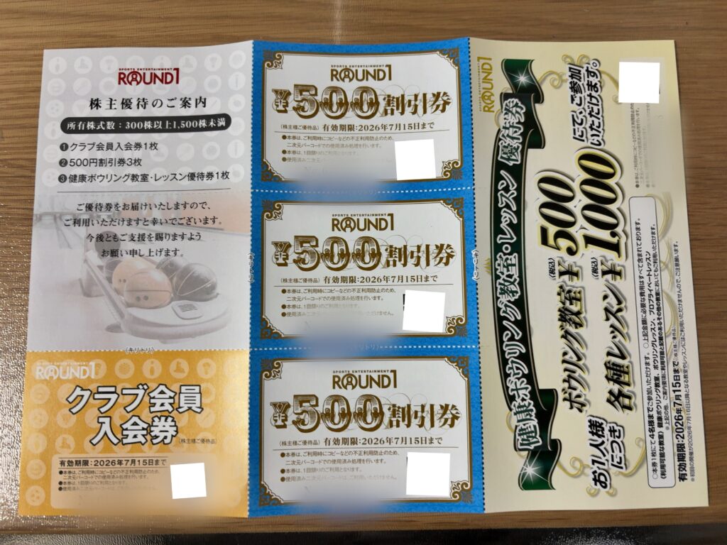 エンタメ系優待の代表格、「ラウンドワン(4680)」から株主優待券が到着しました。