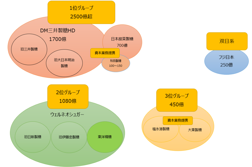- 業界一位グループ:DM三井製糖系(日本甜菜製糖もここに属する)