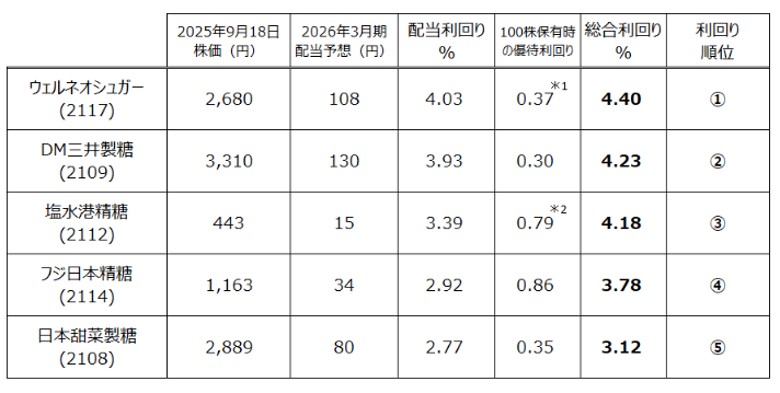 配当と優待を総合的に勘案した利回りランキングを作成しました。(2026年2月20日時点の情報をもとに算出しています)