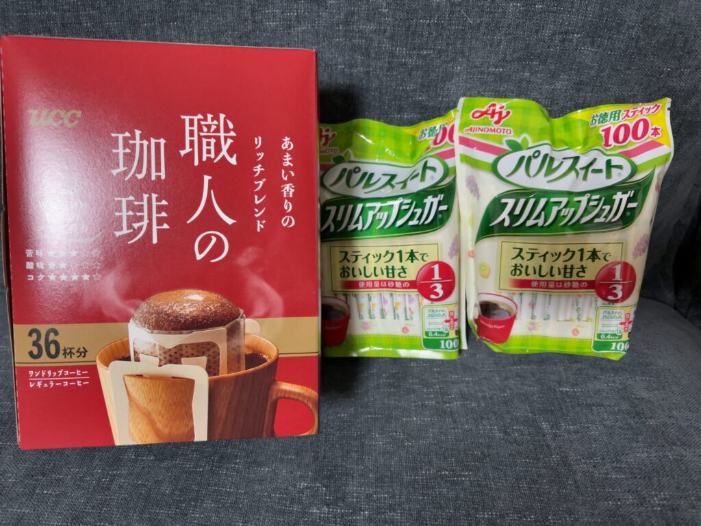 ドリップコーヒー(36袋)と甘味料(スティックタイプ200本)