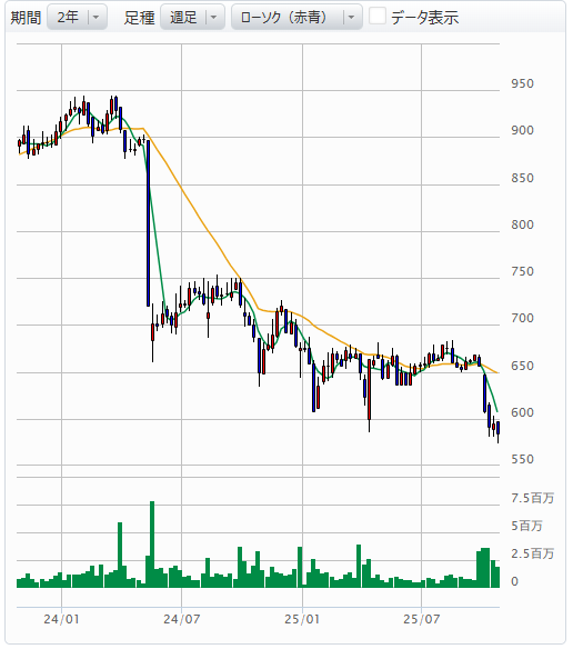 かつて優待投資家から大人気だった「アトム(7412)」の株価が、ついに600円を割り込み、現在580円台まで沈没しています。