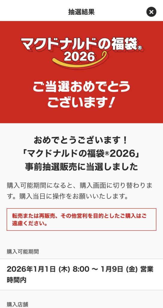 マクドナルド福袋2026、当選しました!!