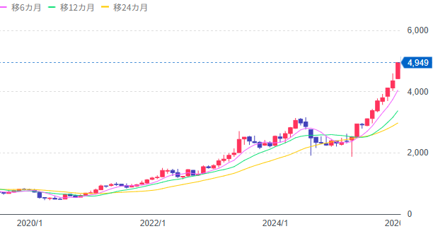 上場来高値4,949円まで来ました。5,000円が見えてます。
