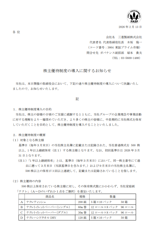 最近の株主優待導入により、なかなかのインパクトを放っている銘柄があります。それが「三菱製紙(3864)」。株主優待制度を導入したところ、株価がグイグイ上昇しているのです。