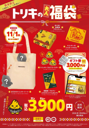全国の鳥貴族各店舗で、「トリキの福袋」が税込3,900円で登場です。