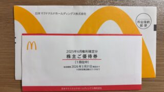 株主優待 【優待到着】月見にポテトにシェイクまでI’m lovin’ it! みなさんこんにちは、ひゃはりんです。さてさて、日本マクドナルドHD(2702)から株主優待が届きましたよ~!幸せの黄色い封筒だね♪優待内容(説明不要?)優待内容はご存じのとおり、株数に応じてもらえる食事券。権利月は毎年6月・12月末。1年以... 2025.09.26 株主優待