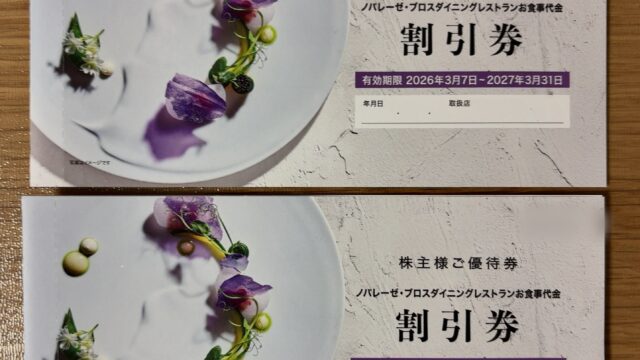 本日届いたのは、ブライダル企業「ノバレーゼ(9160)」の株主優待。封筒を開けると入っていたのは…レストラン割引券。……うん、知ってました。でも本命はこれじゃないんです!!本命は「後日届く特選ギフト」【基準日:毎年12月末】保有株式数継続保...